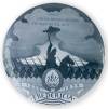 Teilmann mindeplatte 25 år 1898 Arnold Krogh Royal Copenhagen Nr. 23 Teilmann-platte. Fremstillet for vin-handlerfirmaet I.C.Teilmann til dets 25-års jubilæum. Våben med ørneklo, på hjelmen væbnet arm mellem to vinger.
