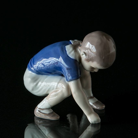 Dickie, Drengefigur, sidder på hug, Bing & Grøndahl figur nr. 1636 eller 412