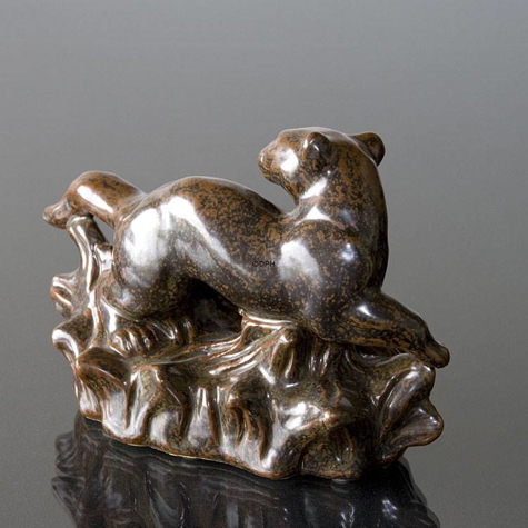 Stentøjsfigur af brun lækat Teknik: Stoneware Designer: Knud Kyhn