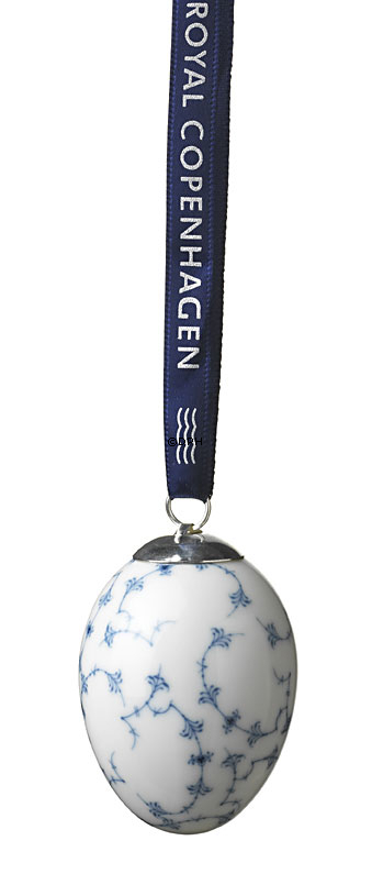 Æg hører påsken til og Royal Copenhagens påskeæg er naturligvis dekoreret med den karakteristiske koboltblå farve. Dekorationen tager udgangspunkt i det musselmalede mønster, som i 2005 kunne fejre 230 års jubilæum. Det var nemlig i 1775 - det år, hvor Den Kongelige Porcelainsfabrik blev grundlagt - at det første musselmalede stel blev til. Porcelænsæggene findes i 4 varianter og hver variant er dekoreret med et udsnit af det gamle musselmalede mønster. Således finder man den stiliserede krysantemum omgivet af små blade på ét æg, græsset med en krysantemum i midten på et andet, en svungen gren med trekløver og blade på det tredje æg og det fjerde æg er dekoreret med en palmette.