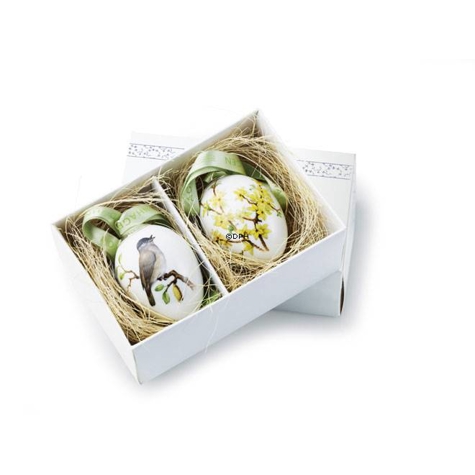 Påskeæg med forsynthia og munk, 2 stk., Royal Copenhagen påskeæg 2011