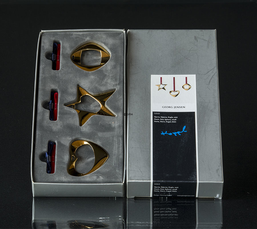 Georg Jensen ornamenter hjerte, stjerne og kugle, 3 stk. lille
