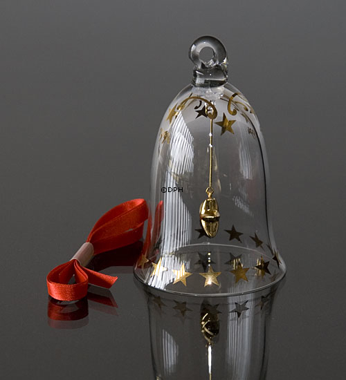 Holmegaard juleklokke fra 1994 med guldstjerne foroven og forneden.