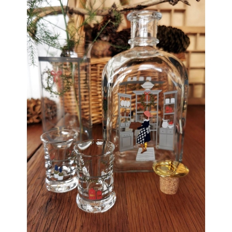 Det ene af de to dramglas fra 2024 er pyntet med en dørkrans, en adventskrans og de blå hyacinther. Det andet dramglas er pyntet med effekter fra køkkenet i form af kande og bordskål, samt opbevaringskrukker til mel, sukker og ligende.