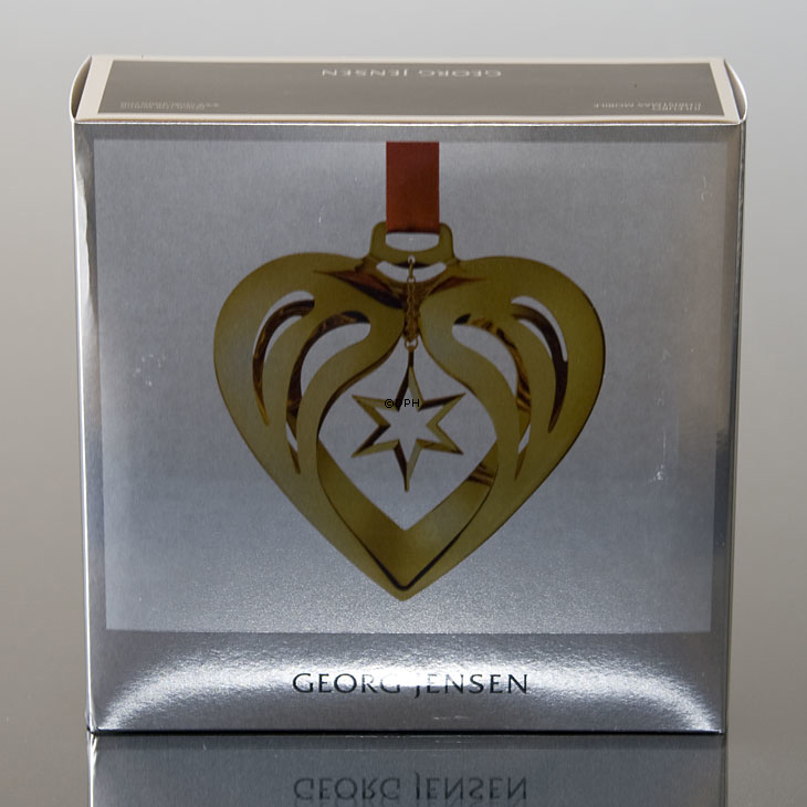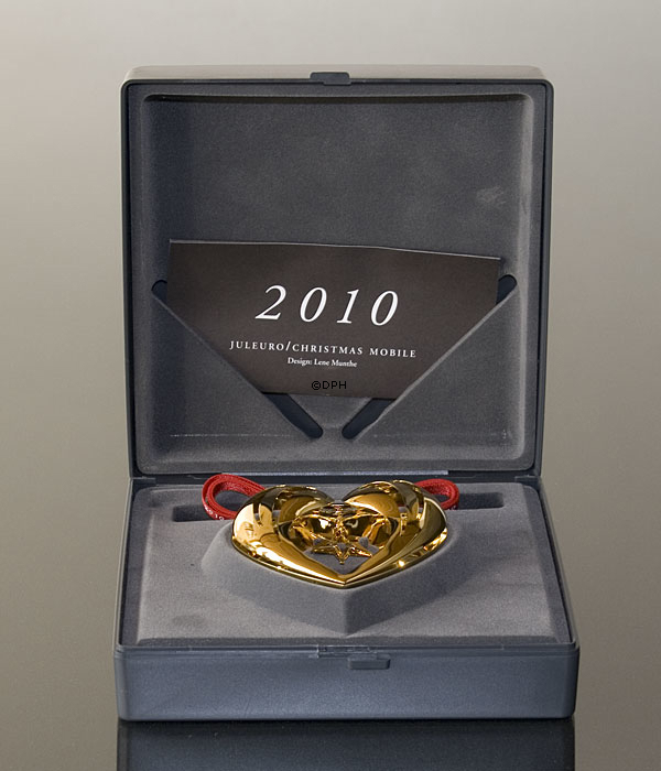 Georg Jensen juleuro 2010 med motiv af hjerte, udført i forgyldt messing. I tilfælde af 2. sortering kan varen være uden originalkasse.