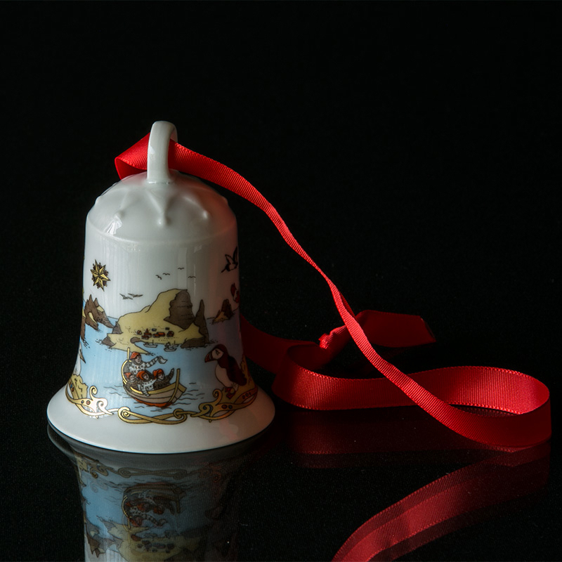Hutschenreuther Juleklokke 1989 med titlen "Vogelfelsen", designet af Ole Winther