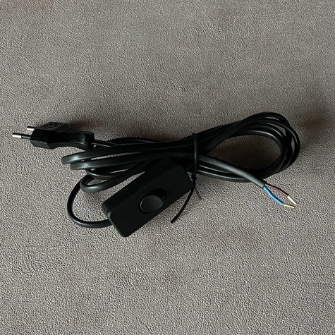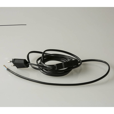 Sort ledning på 2,0 meter med afbryder. Afbrydder sidder 45 cm nede på ledningen, dvs. 140 cm fra hanstikket.
