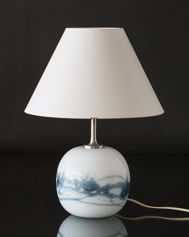 Sakura bordlampe med blå bemaling er produceret på Fyens Glasværk i 1980.