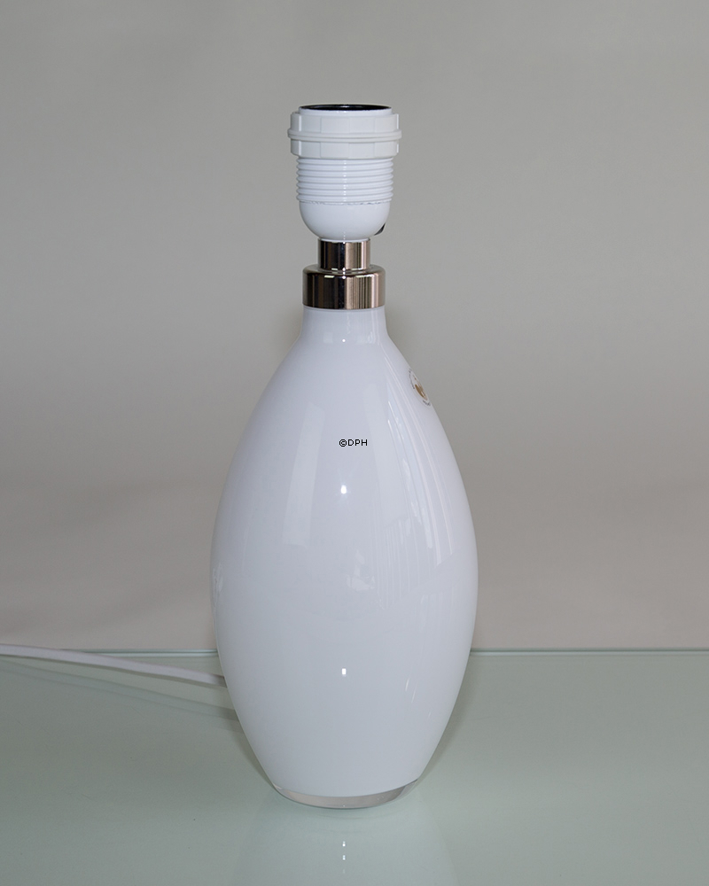Holmegaard Base bordlampe, designet af Peter Svarrer. Lyskilde: 60 W/E27 Bordlampen leveredes inklusiv 3 meter hvid ledning, men eksklusiv lampeskærm og lyskilde.