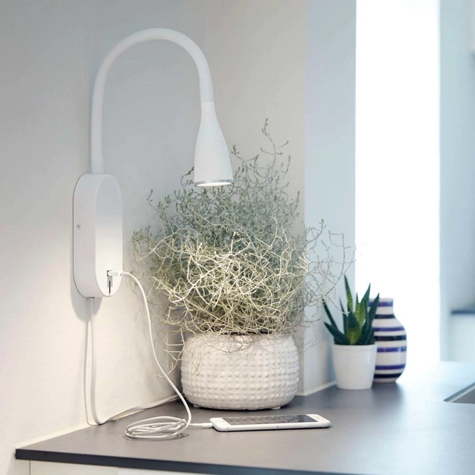 Super smart væglampe i hvid til indendørs brug. Lampen er dæmpbar i 3 lysskyrker og med fleksibel arm, så den kan indstilles i den ønskede vinkel. Nem at tænde og giver et behageligt lys.