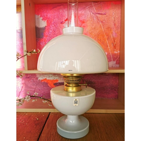 Yderligere information: - Materialer: Opalglas, messing - Type: Petroleumsbordlampe - Farve: Hvid - Design: Klassisk og tidløst - Velegnet til både brug og dekoration