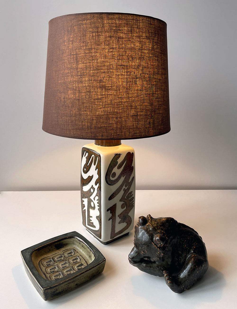 Søholm lampe, stentøj. Brune og beige nuancer.