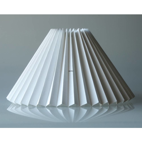 Hvid plissé lampeskærme af hørstof 21cm høj. Lampeskærmen er monteret med stativ til læselampe med fatning Ø40mm. Der er ikke låg til lampeskærmen.
