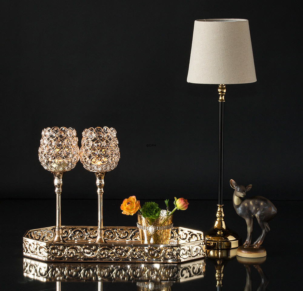Gylden lysestage med krakkeleret gl...