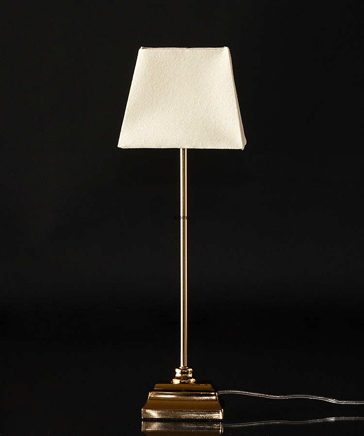 Bordlampe guld finish med rektangulær fod og lampskærm