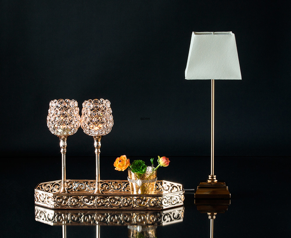 Gylden lysestage med krakkeleret gl...