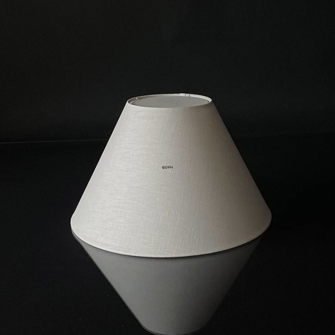 Rund lampeskærm med bærering til skærmstativ. Lampeskrærmen er betrukket med off white hør stof. Der medfølger låg til lampeskærmen. LED Max 10 watt