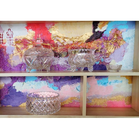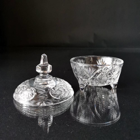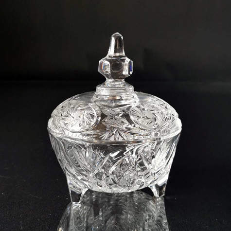 Krystal glas bonbonniere, skål med låg, med slibninger