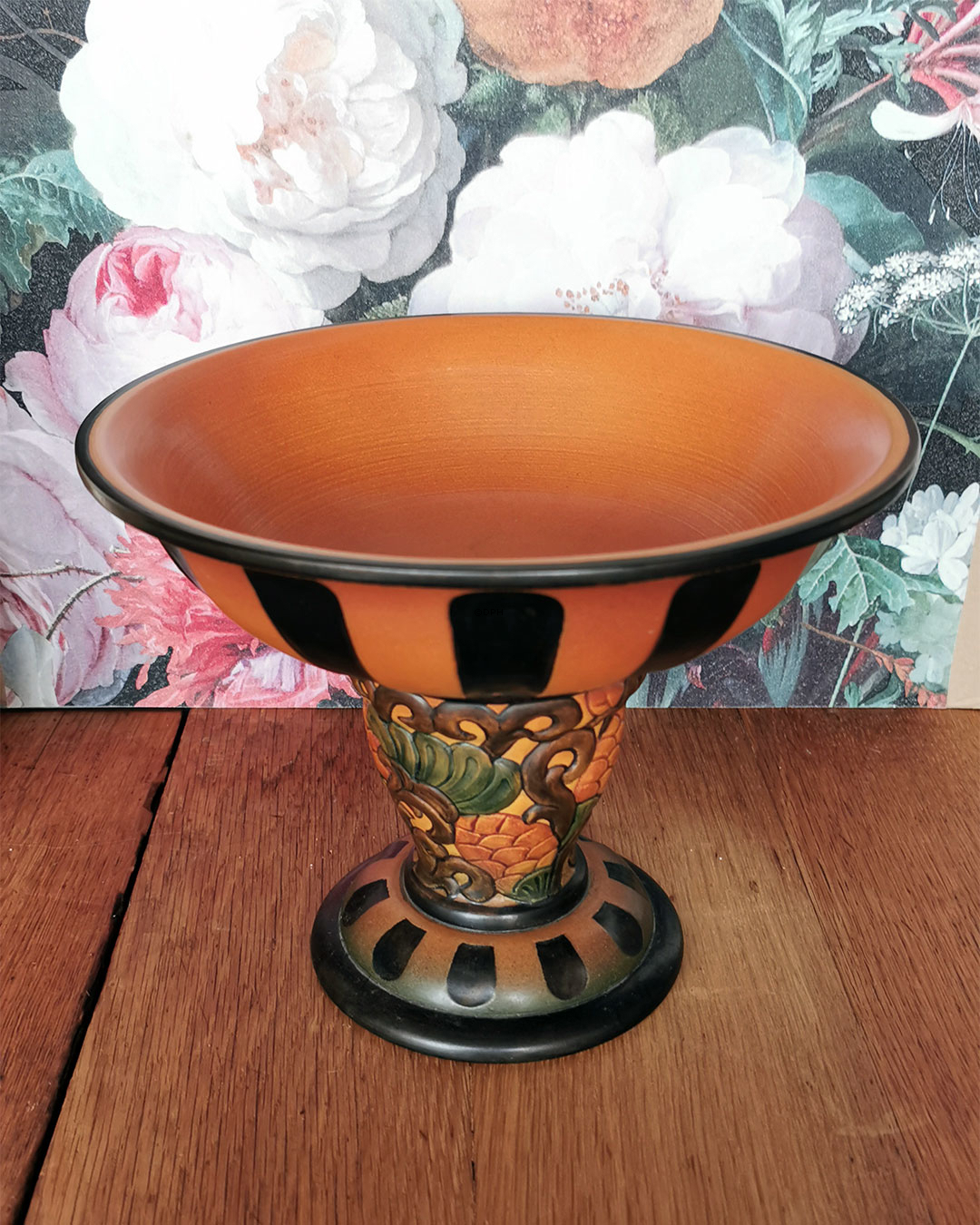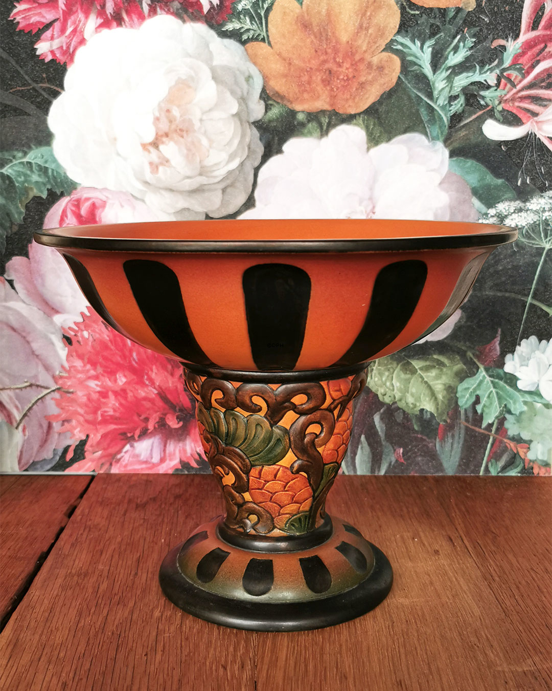 P. Ipsens Enke opsats eller frugtskål med fod i glaseret terrakotta.