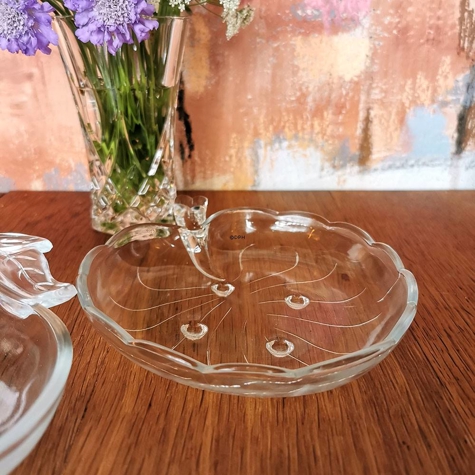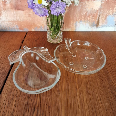 Glasskåle i form af æble og pære, med små/revner i kanten, sæt af 2 stk.