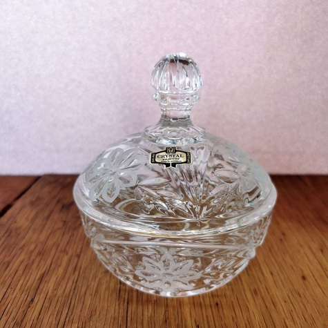 Krystal glas bonbonniere, skål med låg, med slibninger