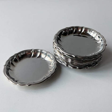 Sølv glasbakke af forskellige mærker, 8 cm, med brugsspor