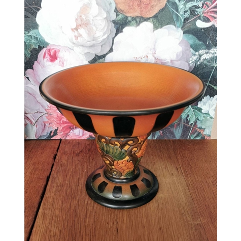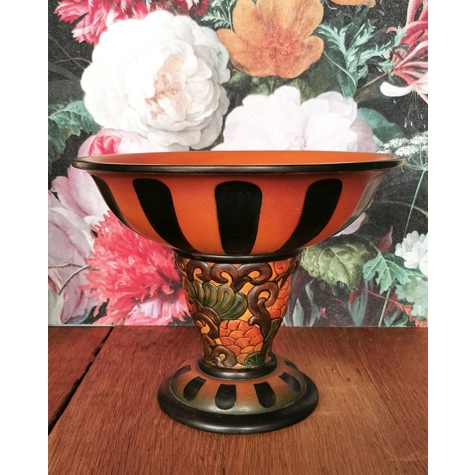 P. Ipsens Enke opsats eller frugtskål med fod i glaseret terrakotta.