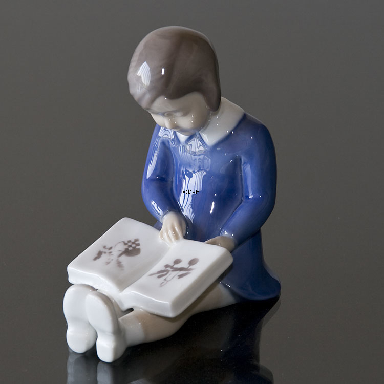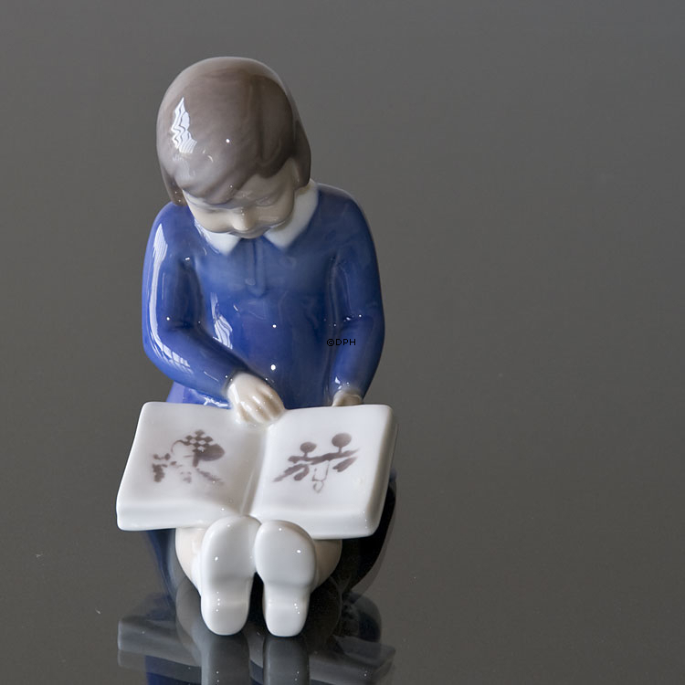 Pige med bog Teknik : underglasur Old B&G No.: 2247 Design : Claire Weiss