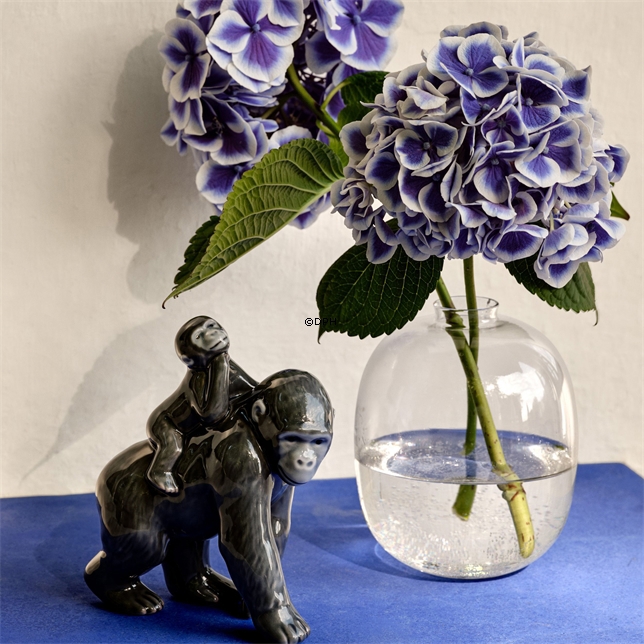 Royal Copenhagen årsfigur 2023 gorilla med unge, designet af Allan Therkelsen og udført i underglasur.