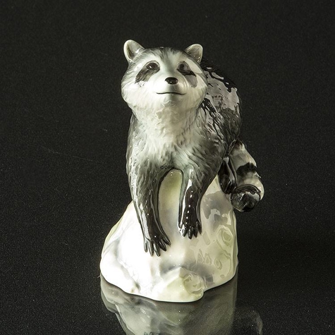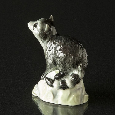 Vaskebjørn på sten kigger op, Royal Copenhagen figur nr. 057