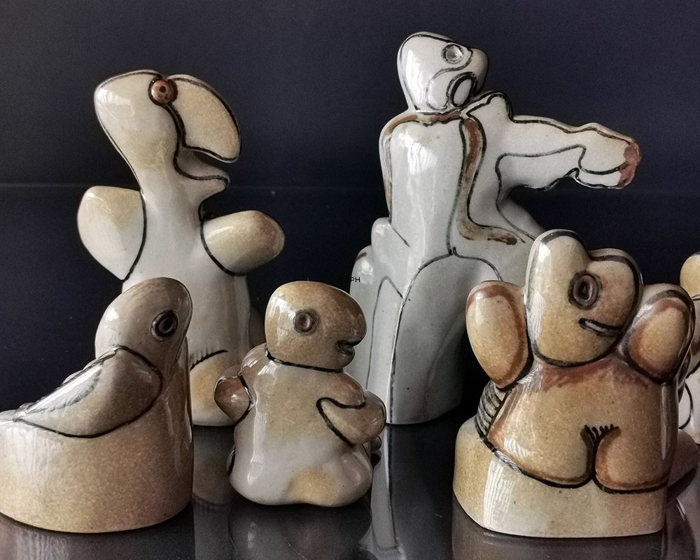 Abstrakt stentøjsfigur, glaseret, designet af Steen Lykke Madsen