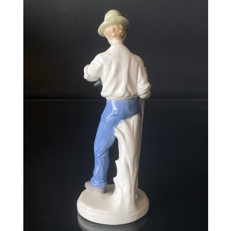 Tysk porcelænsfigur af mand med le. Figuren er produceret af Carl Scheidig Gräfenthal Thüringen.