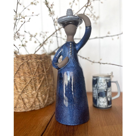 Keramik figur af kvinde med hat. Produceret af svenske Jie Verkstad og designet af Elsi Bourelius.