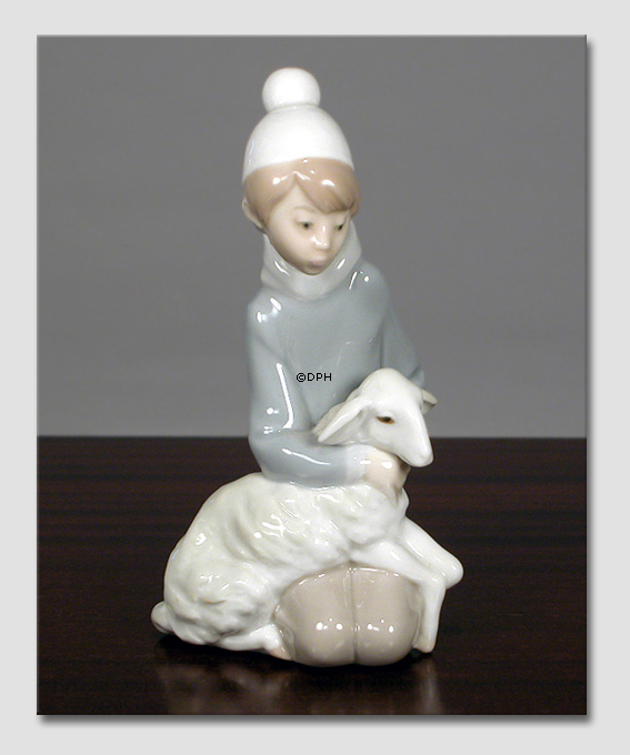 Lladro Figur, Dreng siddende med får