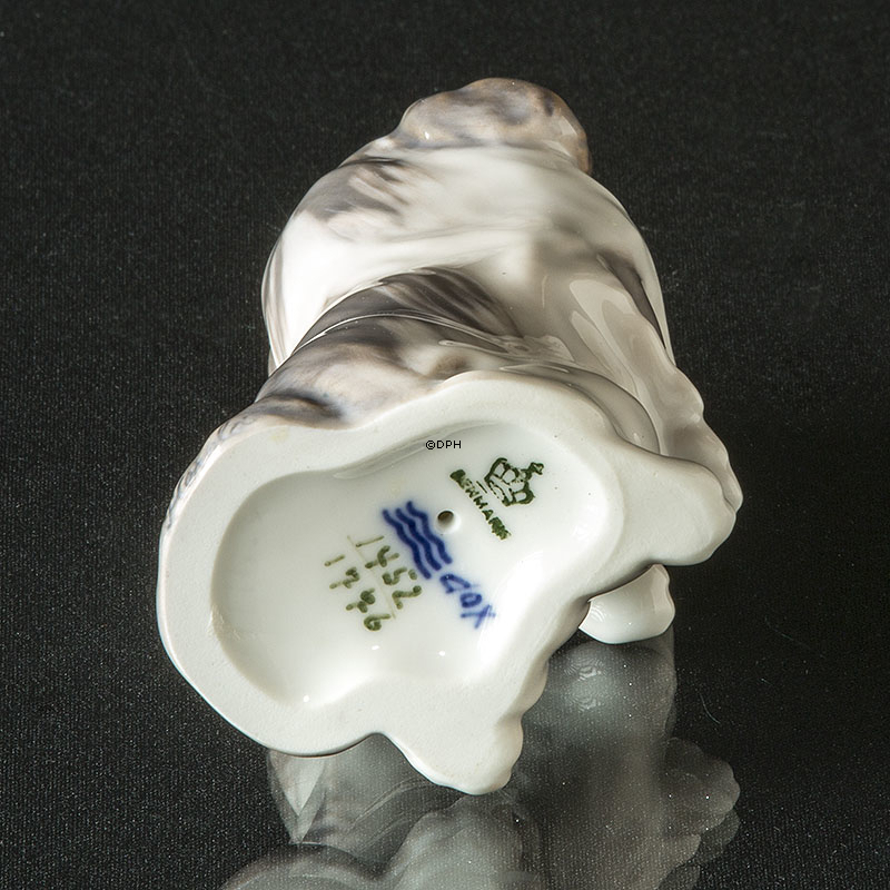 Pekingeser, sort/grå og hvid Royal Copenhagen figur af hund nr. 1452-1776 (1894-1922)