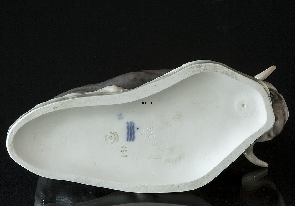 Moskusokse, Royal Copenhagen figur 530 (1894-1922) Repareret v/hornene (Meget sjælden)