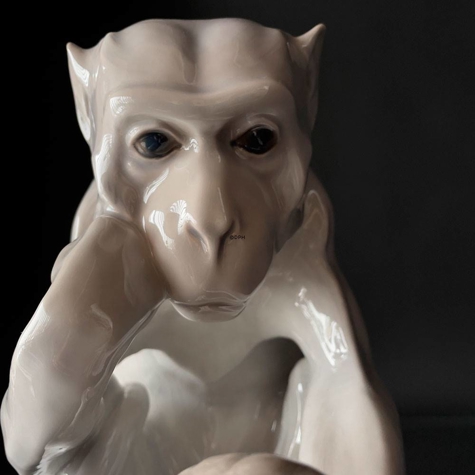 Porcelænsfigur af Abe med Skildpadde Teknik: Underglasur Designet af: Dahl-Jensen