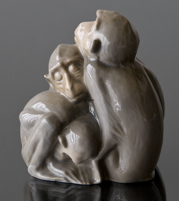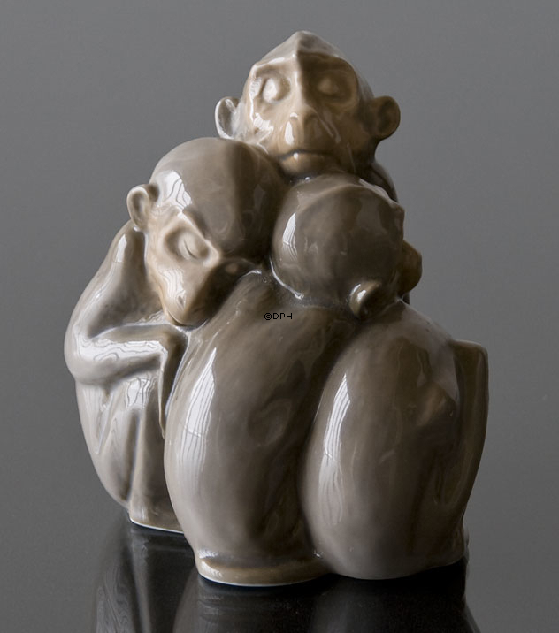 Porcelænsfigur af sovende Abe Teknik: Underglasur Designet af: Ingeborg Plockross Irminger