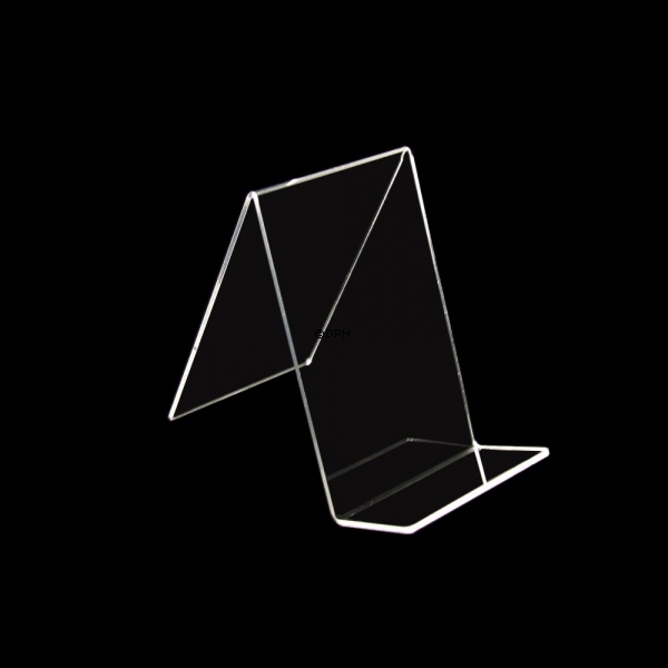 Denne kvalitets bogstøtte er produceret i klart plast/Akryl. Bogholderen står stabilt, og kan anvendes til bøger, men også til mange andre ting, som man ønsker udstillet