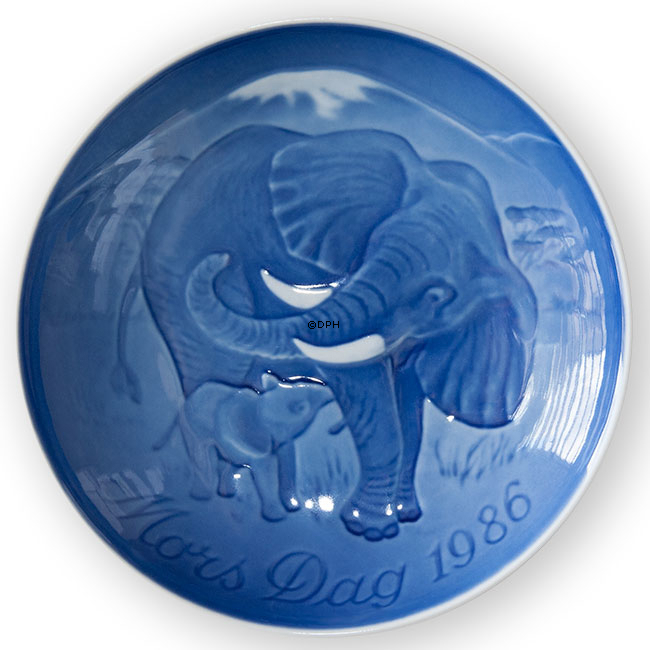 Bing & Grøndahl Mors dag platte 1986 med titlen Elefant med unge. Morsdag platten er designet af Henry Thelander. Motivet på Bing & Grøndahl Mors Dag platten 1986 er en elefant med sin unge. Hvis elefantungen er en hun kan hun blive i flokken i lang tid. Elefantflokkene består af en førerhun og hendes døtre og deres døtre. Hannerne jages væk og vandre sammen i mindre flokke eller alene. Bing & Grøndahl mors dag platterne startede i 1969 og fortsættes stadig med en ny platte hvert år.