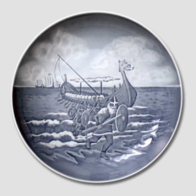 Bing & Grøndahl Vikingeplatte Motiv : Vikingeskib og viking Teknik : Underglasur