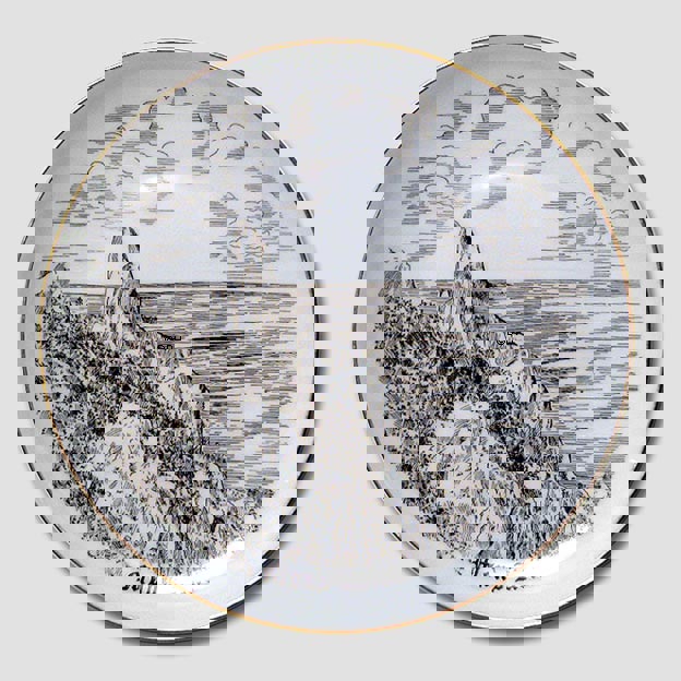 Bing & Grøndahl Platte med Møns Klint, brun stregtegning