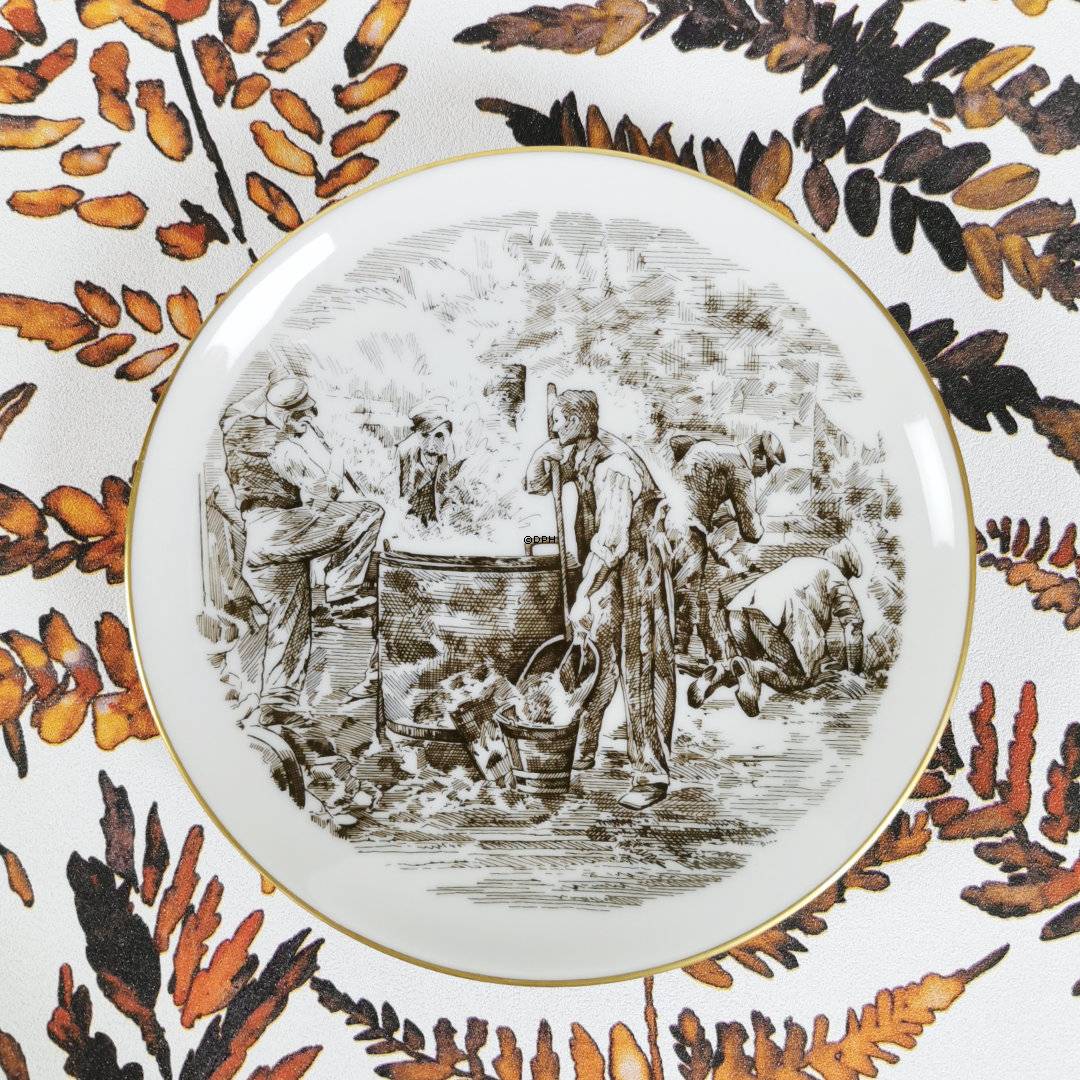 Bing & Grøndahl platte med brun stregtegning af asfaltør/vejarbjder