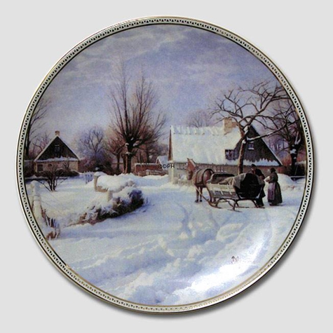 Samleartikler: "Vinter i Nordisk Kunst" platte Motiv: "Landsby i vinterdragt" Kunstner: Peder Mønsted (1859-1941) Teknik: Overglasur-dekoration Udgivelsesår: 1993 Diameter: 8" - 20,5 cm