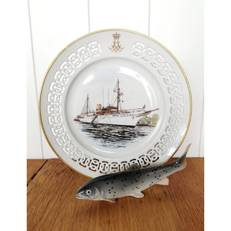 Dansk Skibsplatte med motiv af Kongeskibet "Dannebrog".