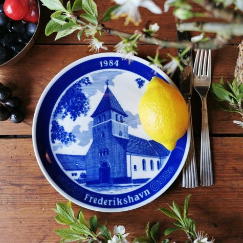 Byplatte Frederikshavn 1984 Dette er ottende platte i serien med Frederikshavn-motiver fra Millhouse. Platten viser Bangsbostrand Kirke og er designet af Bent Borup.
