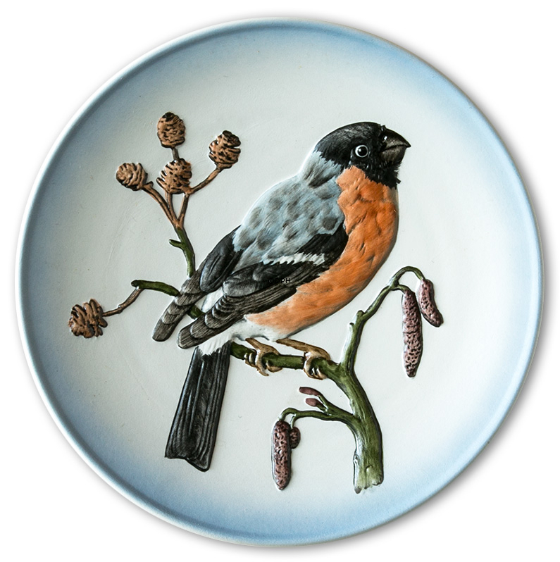 Goebel Hummel platte nr. 4 i serien Wildlife med motiver af fugle. Motivet på denne platte er en dompap.