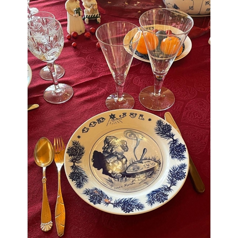 Jenny Nystrøm juleplatte 1982 med motiv af nisse med risengrød.