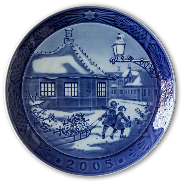 Royal Copenhagen juleplatte 2005, designet af Sven Vestergaard, har titlen H. C. Andersens Hus. Royal Copenhagens juleplatte fra 2005 har naturligvis i 200-året for H.C.Ander- sens fødsel som motiv digterens hus i Odense på fyn. På hjørnet af Hans Jensens Stræde og Bangs Boder ligger der et lille gult hus med sprossede vinduer og rødt tag. I det kønne gamle hus formoder man at H.C.Andersen blev født 2. april 1805. I dag er huset musæum for den verdenskendte digter. Peter og Anna, de to børn der kommer gående med en slæde, har været ude for at hente juletræet og de sidste gaver. De glæder sig meget til juleaften, men allerførst skal det flotte juletræ pyntes, og for første gang har fået lov til at hjælpe med pynten dertil.