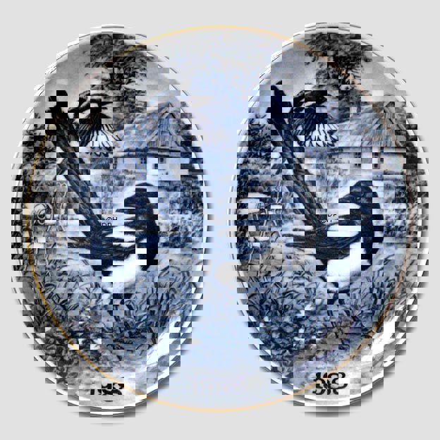 Samleartikler: Fugleplatte Motiv: Skade (Pica Pica) Udgivelsesår: 1988 Teknik: Underglasur Designer: ? Rasmussen Diameter: 7,5" - 20 cm